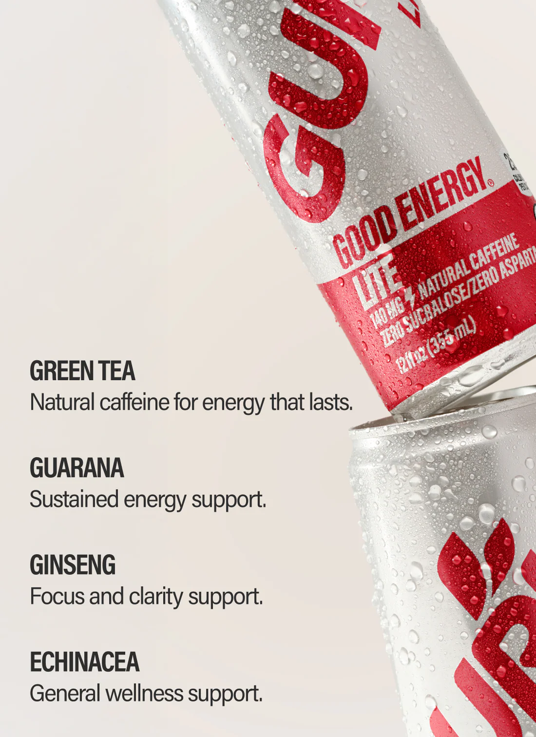 Lite on calories, big on energy. A natural caffeine boost for the good energy you need, and nothing you don’t.